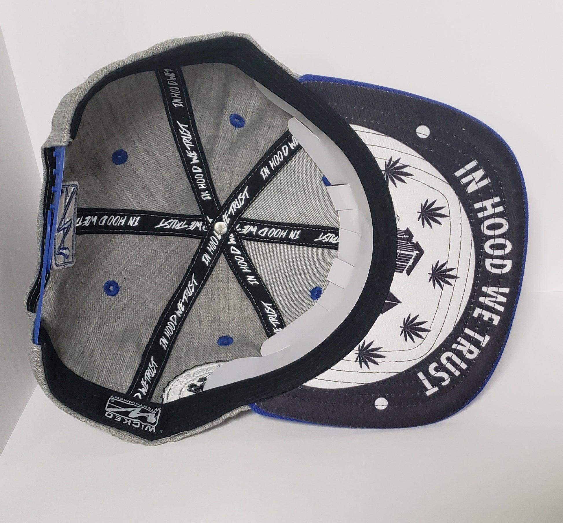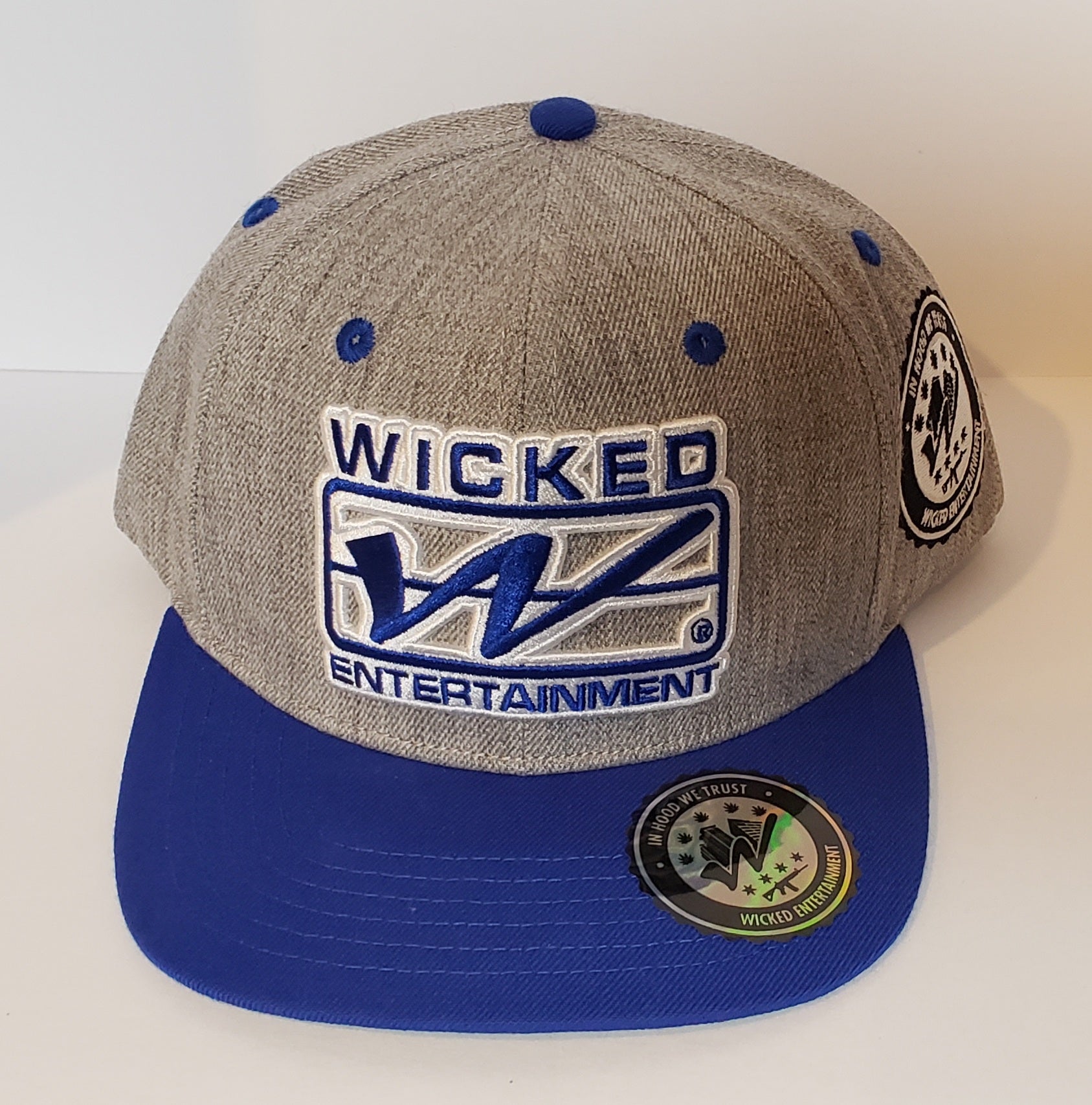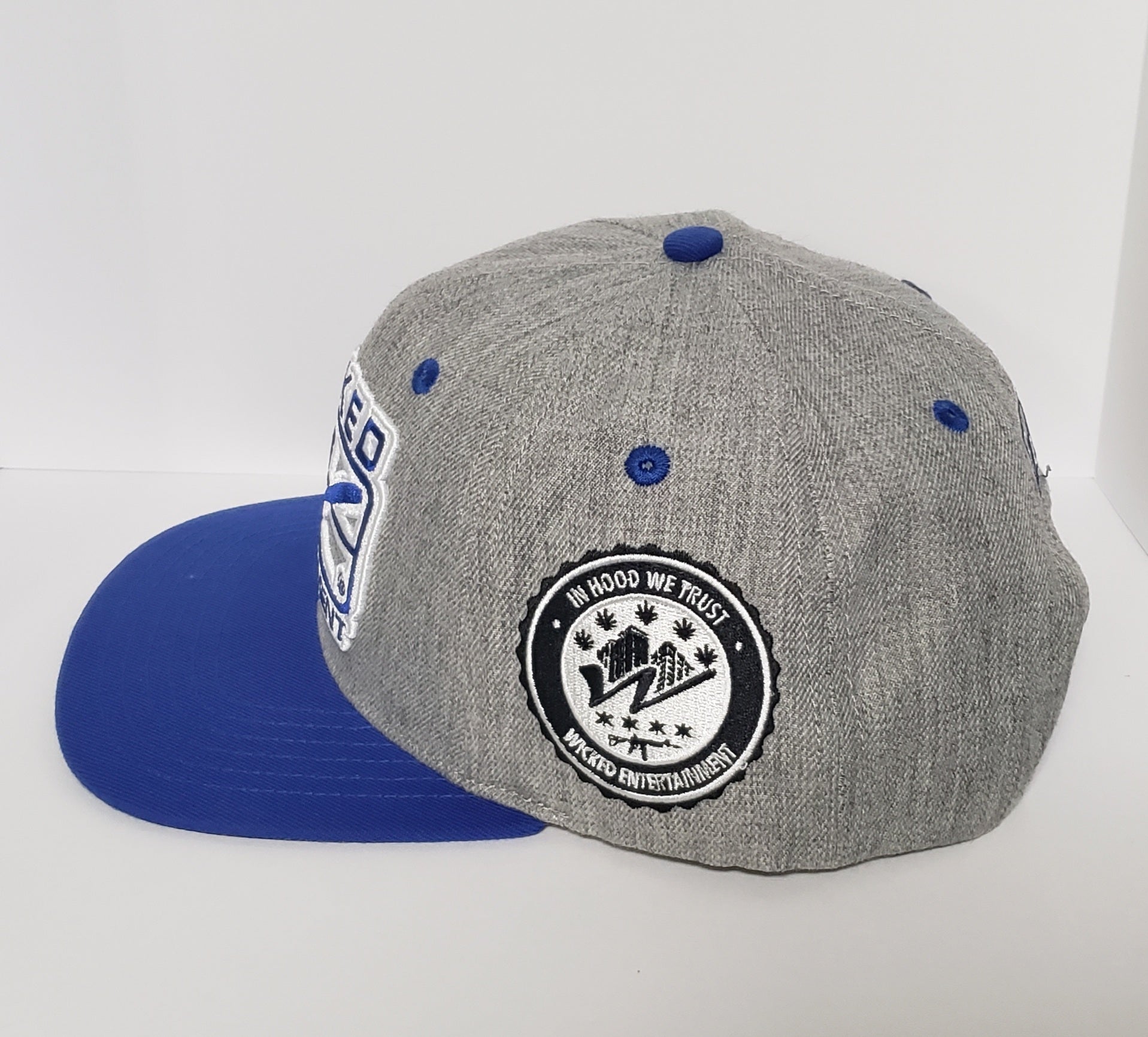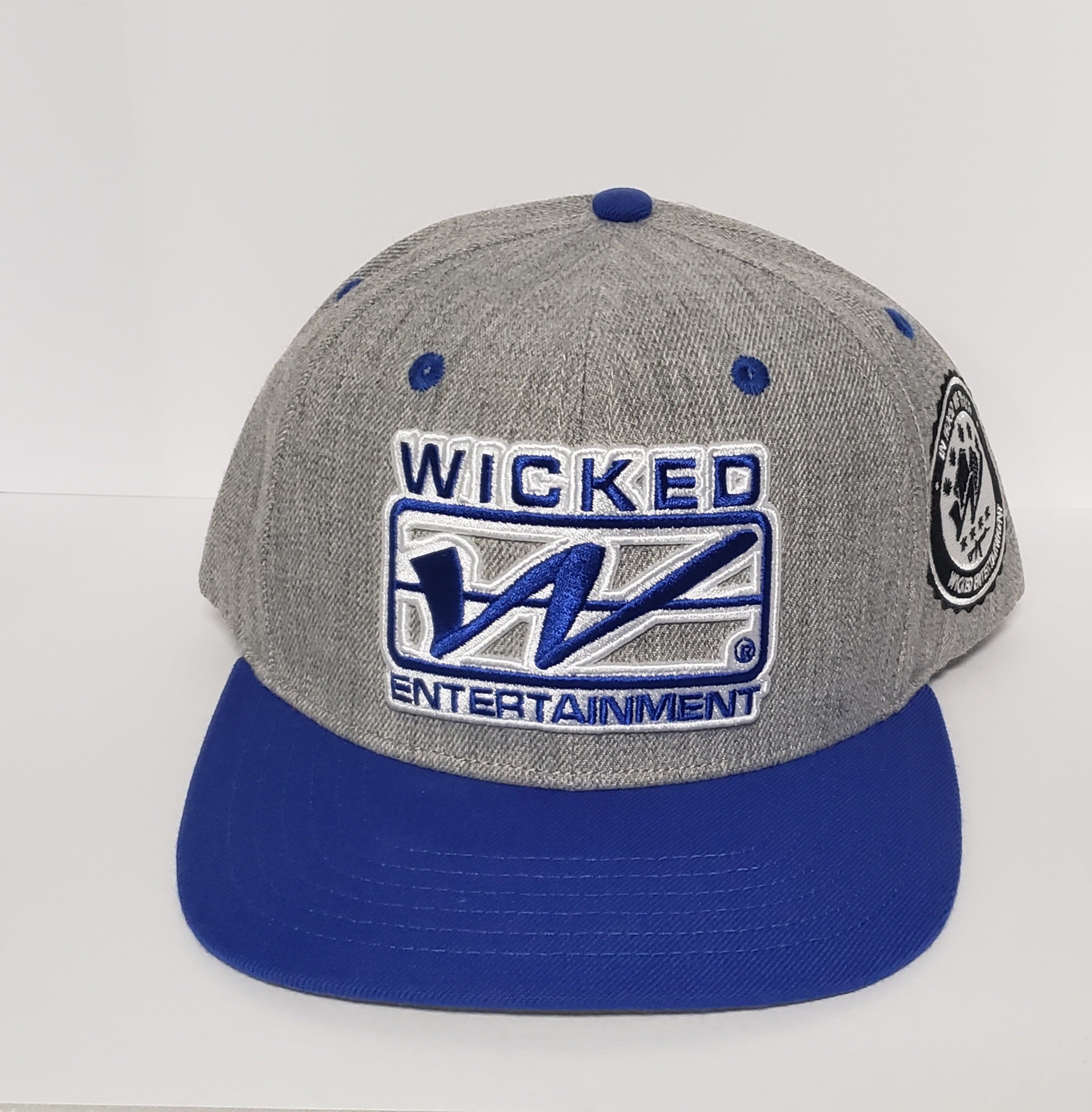 Wicked Logo Snapback hat | Grey and Blue with Blue Brim